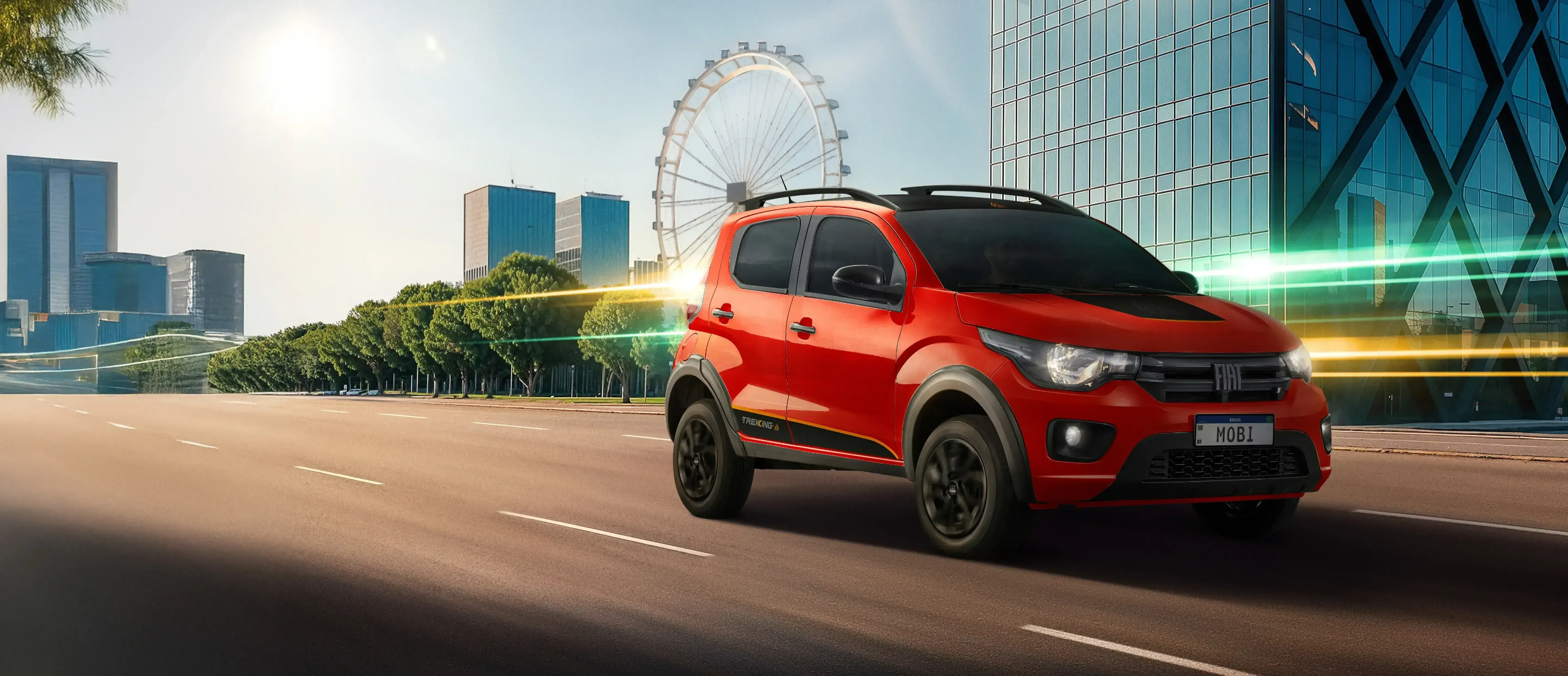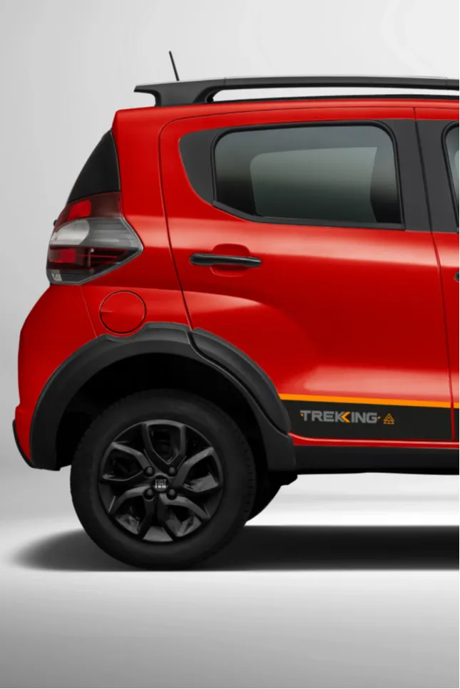 O Mobi Trekking traz toda a praticidade do Mobi, mas com um visual aventureiro e mais tecnologia. Com design exclusivo, detalhes robustos e central multimídia moderna, ele combina atitude e conectividade para transformar cada trajeto em uma experiência ainda mais divertida.
